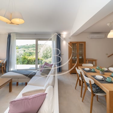 Ova samostojeća kuća površine 145 m² pažljivo je osmišljena kako bi pružila osjećaj doma, luksuza i opuštanja. U prizemlju se nalazi prostrani open-space dnevni boravak s kaminom, moderna kuhinja, blagovaonica, dvije udobne spavaće sobe, kupaonica i tehnička soba. Na katu se nalazi dodatna spavaća soba s vlastitom kupaonicom i natkrivenom terasom s pogledom koji oduzima dah.