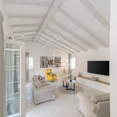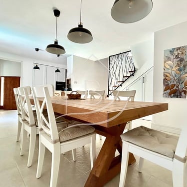 Vanjski prostor nudi bazen od 37 m² s elektrolizom, sunčalište i natkrivenu terasu za objedovanje na otvorenom, okruženu hortikulturno uređenim vrtom s mediteranskim biljem.