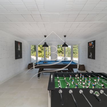 U prizemlju se nalazi konoba pretvorena u prostor za razonodu, opremljena biljarom i stolnim nogometom – savršeno mjesto za druženje s obitelji i prijateljima.